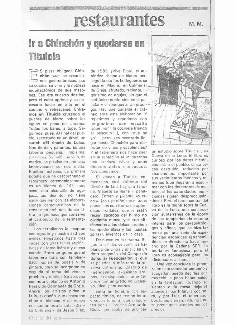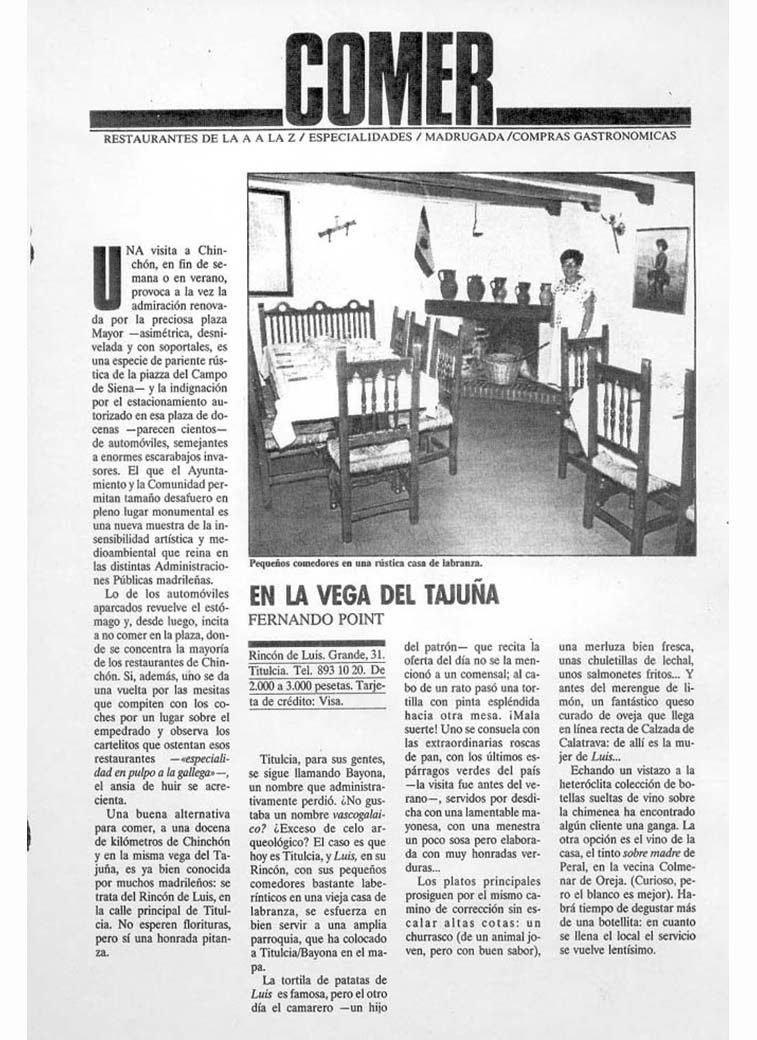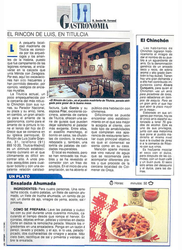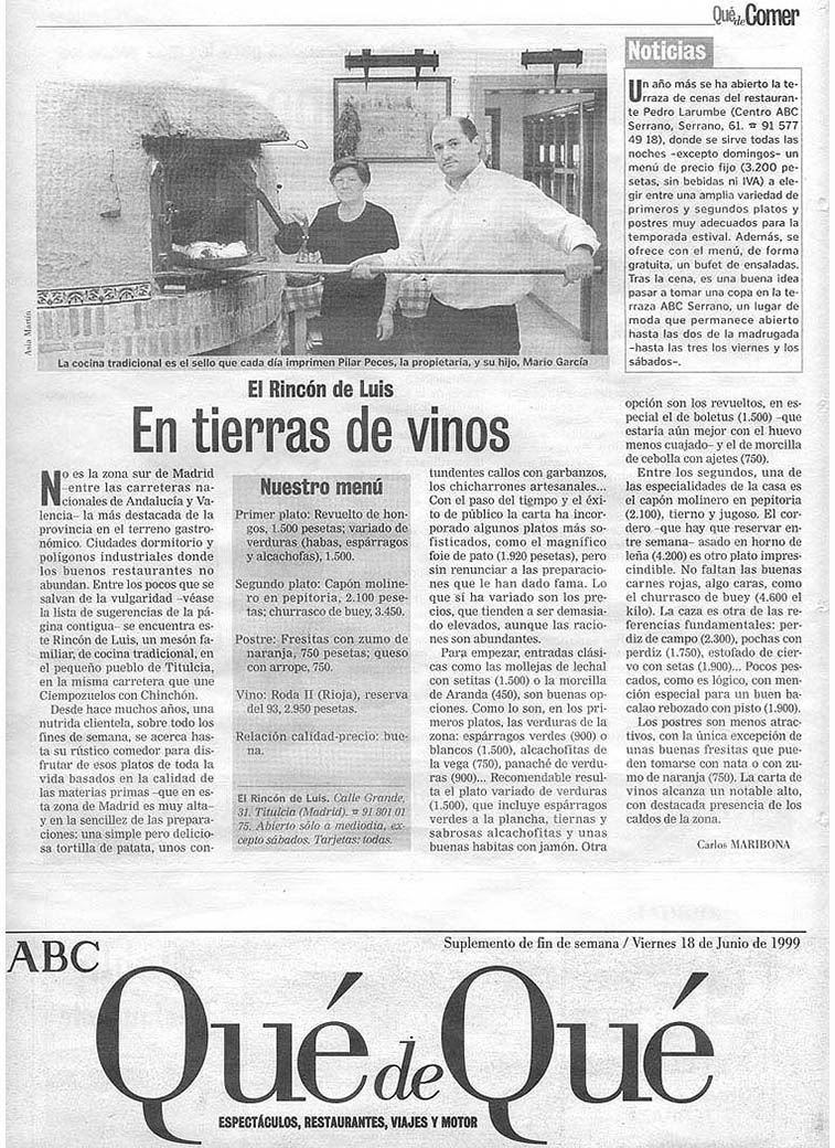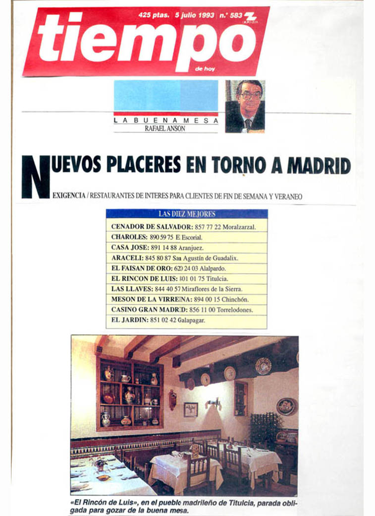 En este curioso pueblecito es donde nos encontramos. En 1981, Luis García, el humilde tabernero (así le gustaba llamarse), emprendía con toda su familia, la aventura de una taberna de pueblo, donde todavía apenas nos visitaban gentes de otros lugares, porque ni siquiera conocían el pueblo; pero poco a poco nos fuimos dando a conocer, sobre todo, por la calidad de la cocina y los productos que utilizamos.